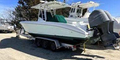 Re-powered with twin 2019 Yamaha F350 V8s (165 hours, warranty through Oct. 2027), this performance-driven center console is ready for serious offshore runs. Equipped with twin Raymarine screens, radar, bow thruster, dual live wells, a spacious head, and more. Comes with a custom trailer. Smooth, fast, and fully loaded—this Spectre 34 is turn-key and built to impress.